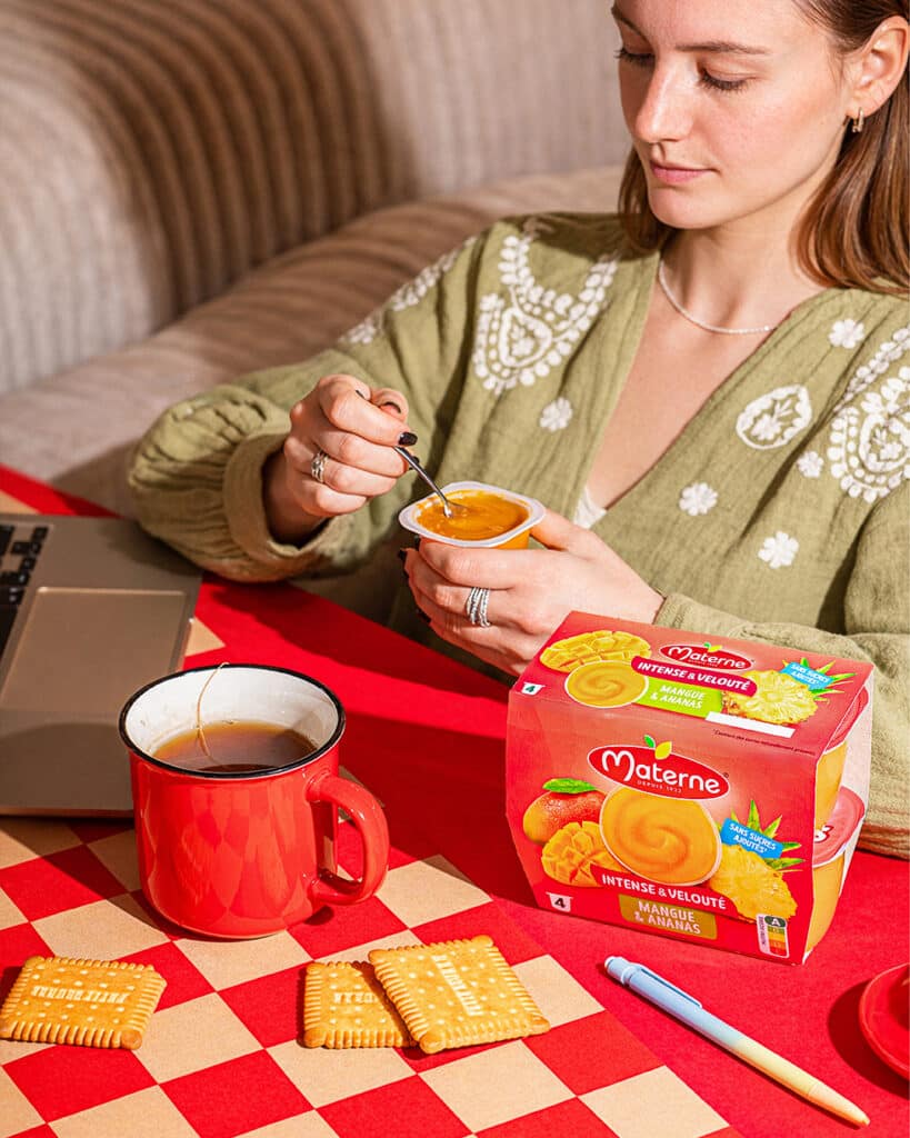 Et parce que chacun a ses propres habitudes, Materne® a choisi de proposer des recettes fruitées qui s’adaptent à vos besoins et à toutes vos envies : que vous soyez à table ou non, à la maison ou à l’extérieur, seul, en famille ou entre amis, nos coupelles et nos formats nomades en gourde vous accompagnent partout pour savourer le bon goût des fruits.