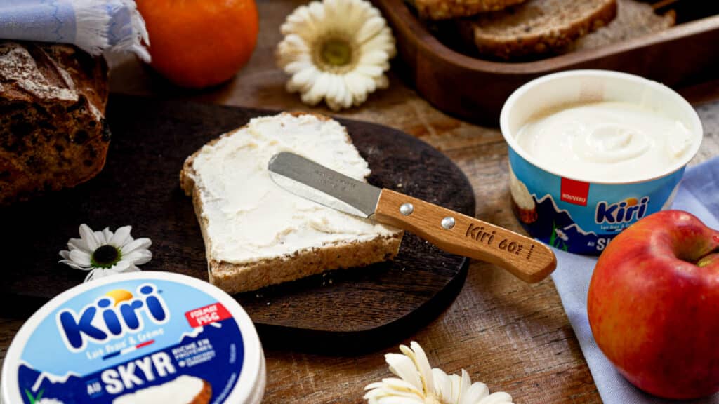 Avec Kiri au Skyr, la marque propose une nouvelle expérience à tartiner unique : toute l’onctuosité et le goût authentique de Kiri, subtilement équilibrés par la fraîcheur et la légère acidité du Skyr.