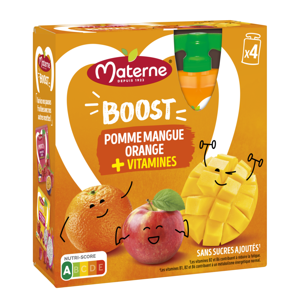 MaterneNos produitsMaterne® SSA Bénéfices " Boost " Pomme Mangue Orange + Vitamines 4x90g